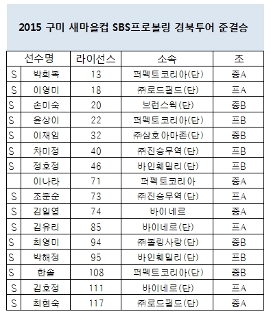 2015 구미 새마을컵 SBS프로볼링 경북투어 여자부 준결승 명단 페이지 정보 작성자 한국프로볼링 작성일 15-07-20 17:59 조회 19,387회 댓글 0건 본문 추천0 이전글2015 구미 새마을컵 SBS프로볼링 경북투어 여자 개인전 준결승 성적 다음글2015 구미 새마을컵 SBS프로볼링 경북투어 여자 단체전 2일차 성적 목록 댓글목록 0 댓글목록 등록된 댓글이 없습니다.