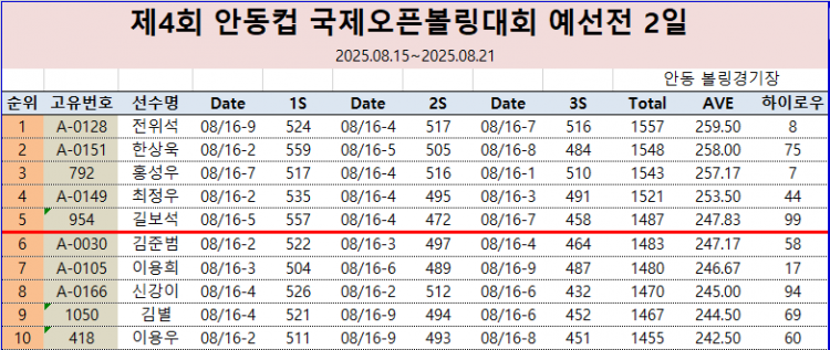 제4회 안동컵 국제오픈 볼링대회 오픈부 예선 7일차 데일리 성적 페이지 정보 작성자 한국프로볼링 작성일 25-08-15 20:57 조회 4,272회 댓글 0건 본문 제4회 안동컵 국제오픈 볼링대회 오픈부 예선 데일리 성적 추천0 이전글제4회 안동컵 국제오픈볼링대회 동호인부 7일차 성적(데일리 포함) 다음글제4회 안동컵 국제오픈 볼링대회 오픈부 예선 최종 성적 목록 댓글목록 0 댓글목록 등록된 댓글이 없습니다.